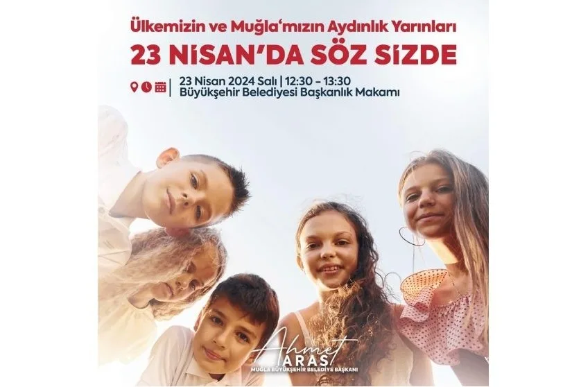 23 Nisan Ulusal Egemenlik ve Çocuk Bayramı’nda Muğla Büyükşehir Belediye Başkanı Ahmet Aras, çocukları Başkanlık makamında ağırlayacak. Başkan Aras sosyal medya hesabından 23 Nisan ile ilgili şu paylaşımı yaptı;