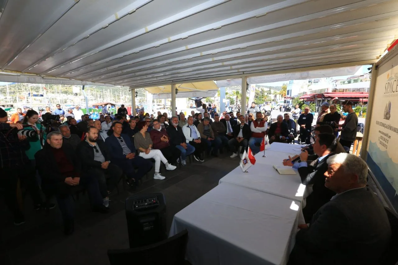 Muğla Büyükşehir Belediye başkanı seçilmesi durumunda Denizcilik A.Ş iştirakini kuracağını söylen Aras, Denizcilik A.Ş. yönetimine Deniz Ticaret Odalarından ve Denizciler Derneğinden üyelerin olacağını belirtti. Aras, “Denizcilik çok önemli. Ben de üyesiyim zaten. Biz de bu işin dışında değiliz. Denizde doğduk, denizde büyüdük biz de. Şimdi sizlerin sıkıntılarını da Orhan başkanımla, Erol başkanımla her seferinde konuştuk. Ve sorumlulara, yetkililere ilettik. Ancak her zaman belki doğru çözümleri bulamadık. Ama şimdi Allah nasip etti, bu göreve geldik. Bu durumda artık gereken neyse yaşadığım sıkıntılardan da hareketle doğru kararlar alacağımdan hiç şüpheniz olmasın. Buralar MUTTAŞ’a bağlı. Şimdi ben şunu doğru bulmuyorum. Yani taksiyle dolmuşu da, otobüsü de veya elli metre motor yatıda aynı şirketin yönetmesini doğru bulmuyoruz. O yüzden Fethiye, Marmaris, Bodrum limanlarında onların içinde barındıran bir iştirak kuracağım. Denizcilik A.Ş. ve bu Denizcilik A.Ş. yönetimine Deniz Ticaret Odalarımızdan veya sizlerin uygun gördüğü denizciler derneğimizin uygun arkadaşlarımızdan yönetim kurullarında görev vererek, görev aldırarak, yönetim kurullarına yerleştirerek kendi kararlarınızı kendiniz vermeniz gerektiğini düşünüyorum. Bunun için artık bu liman sizin yönetiminizde olacak. Gelirlerini Bodrum’a bırak derseniz ona bir şey diyemeyeceğim. Çünkü yatırımı sonuçta. Büyükşehir belediyesinin yeri burası ona bir şey diyemeyeceğim ama buranın gelirleri burada kalır. Bir yatırım yapılacaksa buraya yapılır. Bunu da buradan size taahhüt ediyorum. Bu Denizcilik A.Ş.’yi hemen kuracağız. Hazırlığını yaptık. Hemen kurduktan sonra yönetimi bundan sonra sizde. Buranın düzeni, kim giriyor, kim çıkıyor. Oturun hep beraber karar verin. Cumartesi günü transfer meseleleriniz, buraya bağlanan özel teknelerin durumu… Ne varsa, ne gerekiyorsa kendiniz karar verin. Ben sizin verdiğiniz kararların hepsine kardeşiniz olarak imzamı atıyorum” diye konuştu.