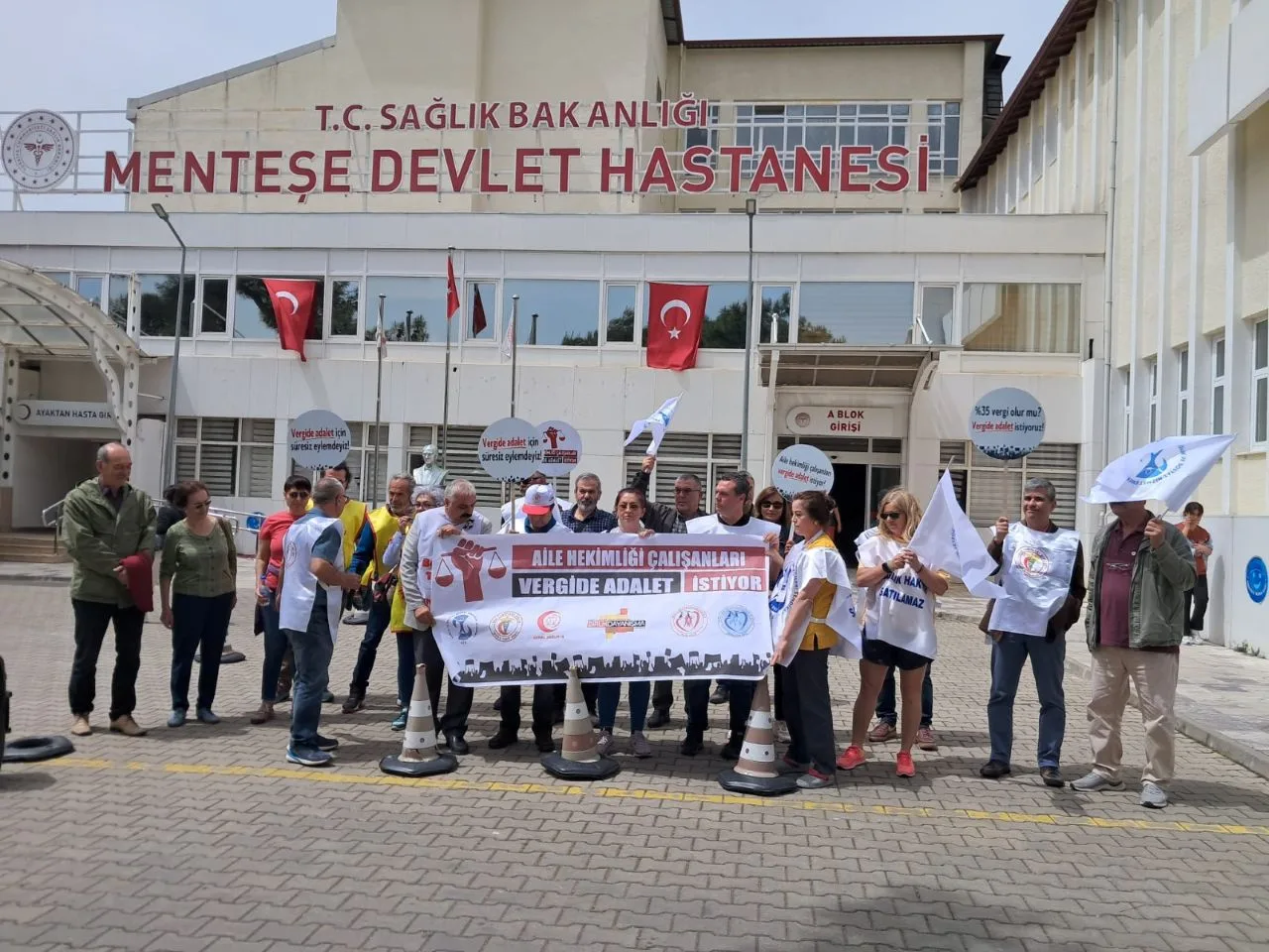 Sağlık ve Sosyal Hizmet Emekçileri Sendikası Muğla Şubesi, Muğla Tabip Odası, Genel Sağlık İş Sendikası Muğla Şubesi, Birlik ve Dayanışma Sendikası Muğla Şubesi, Muğla Aile Sağlığı Çalışanları Derneği, Muğla Aile Hekimleri Derneği üyeleri, her Çarşamba günü düzenledikleri ‘Aile Hekimliği Çalışanları Vergide Adalet İstiyor’ eylemine, Menteşe Devlet Hastanesi önünde devam etti.