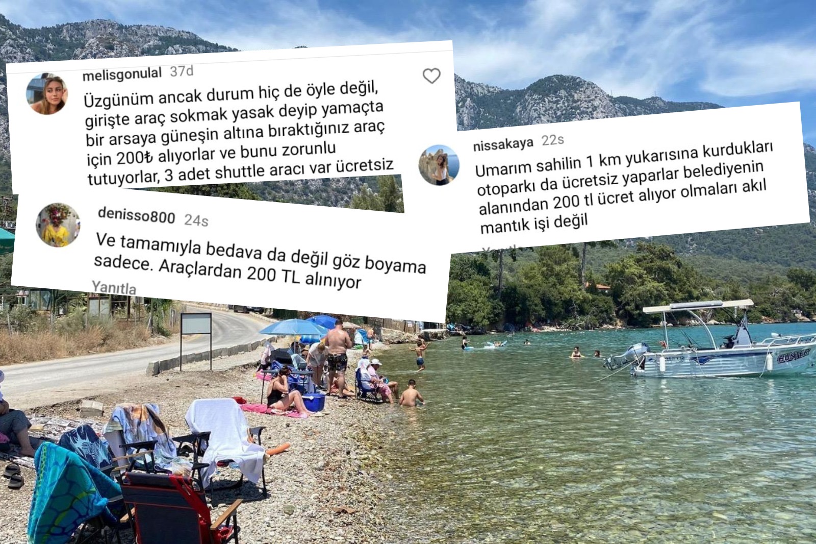Plaj girişinde araçlardan alınan ücretlerdeki artış da tepkiye neden oldu. Geçtiğimiz yıl 100 lira olan otopark ücreti, bu yıl 200 liraya çıkartıldı. Sosyal medyada, “Girişte araç sokmak yasak deyip yamaçta bir arsaya güneşin altına bıraktığınız araç için 200 TL alıyorlar ve bunu zorunlu tutuyorlar” şeklinde tepkiler dile getirildi.