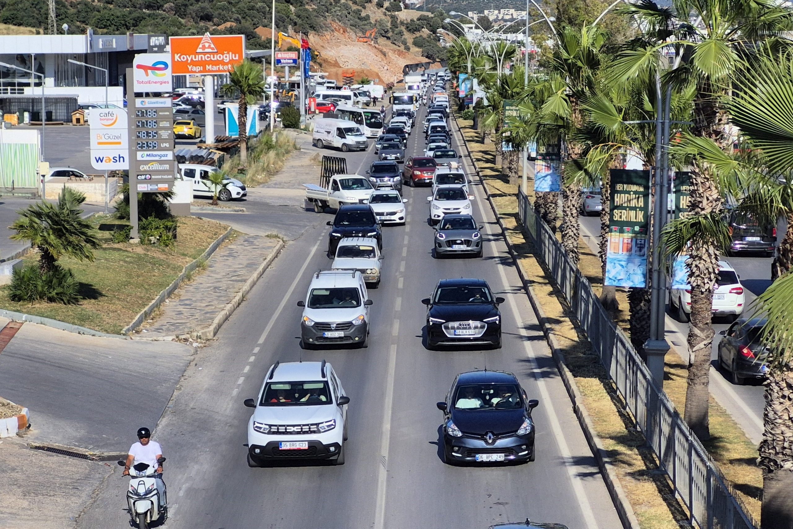 Trafikteki bayram yoğunluğu dün ve bugün kendisini hissettirdi. İlçede halihazırda yoğun olan araç trafiğine bayram yoğunluğu da eklenince araç kuyrukları daha da uzadı. Ana arterlerde sürücüler tampon tampona gitmek zorunda kaldı. Bazı yollarda kilometrelerce araç kuyruğu oluştu. Son 24 saatte Bodrum’a 50 bin aracın girdiği öğrenildi.