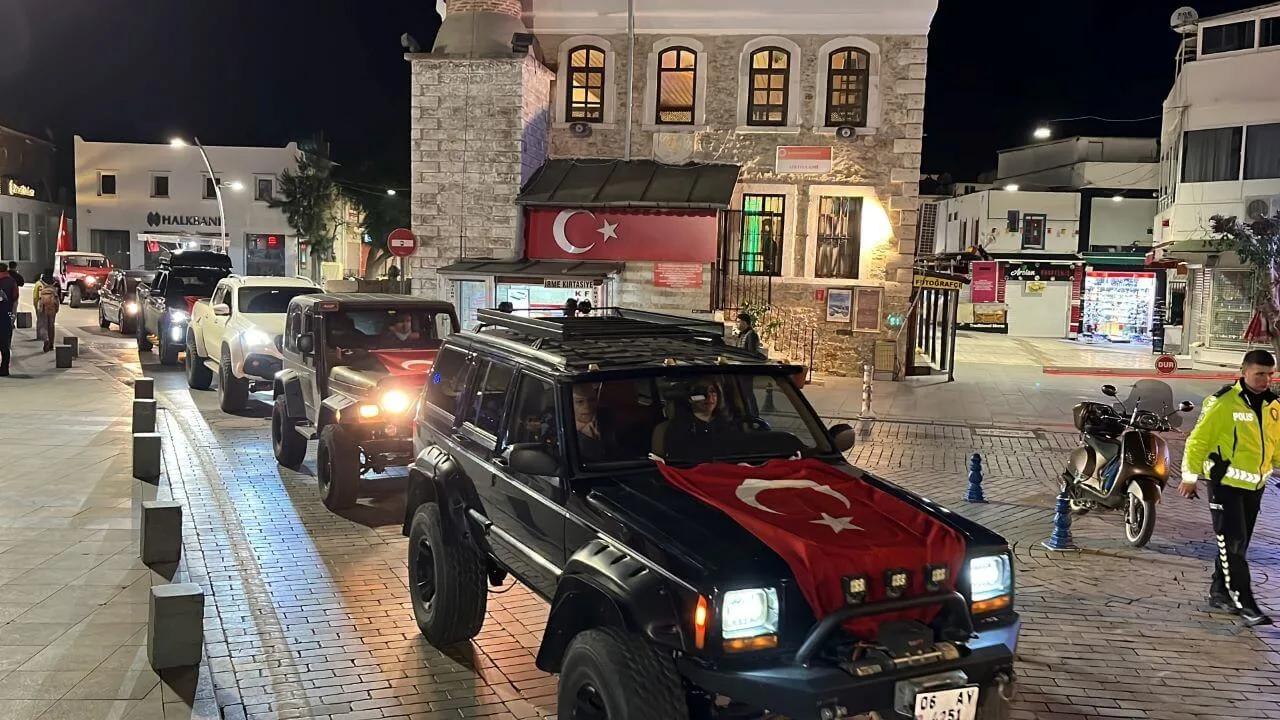 Pençe Kilit Harekatı’nda şehit olan Mehmetçikler için Muğla’nın Bodrum ilçesinde arazi araçlarından oluşan konvoy düzenledi.