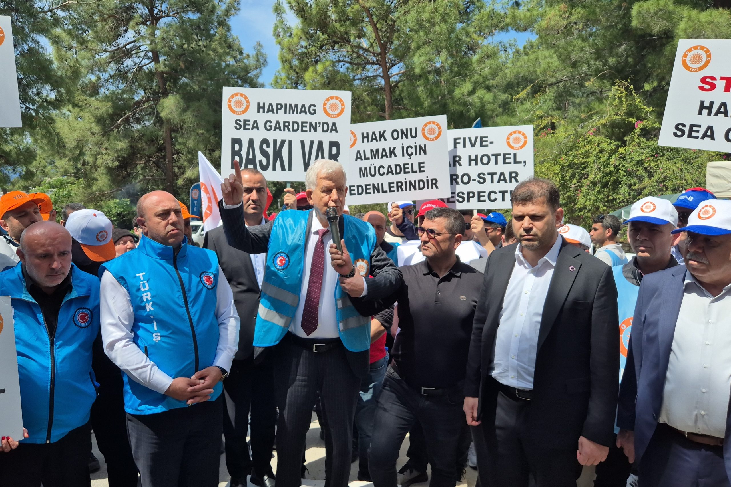 Muğla’nın Bodrum ilçesinde Hapimag Resort Sea Garden Otel’de toplu iş sözleşmesi görüşmelerinde uzlaşma sağlanamaması üzerine Türkiye Otel Lokanta Dinlenme Yerleri İşçileri Sendikası’na (TOLEYİS) bağlı işçiler greve çıktı. TOLEYİS Genel Başkanı Cemail Bakındı, “Onlar eğer hak olan ücreti temin için masaya gelmezlerse, onlara bu yazı burada haram edeceğiz” dedi.