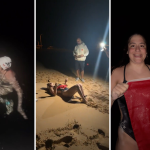 Bodrumlu yüzücü Aysu Türkoğlu, Cook Strait geçişi için suya girerken, gece karanlığında yüzüşünü sürdürüyor.