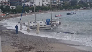 Yelkenli karaya vurdu