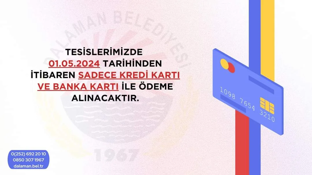 Dalaman Belediyesi, bünyesinde ki tesislerinde sadece kredi kartı ve banka kartı ile ödeme alınacağını duyurdu.