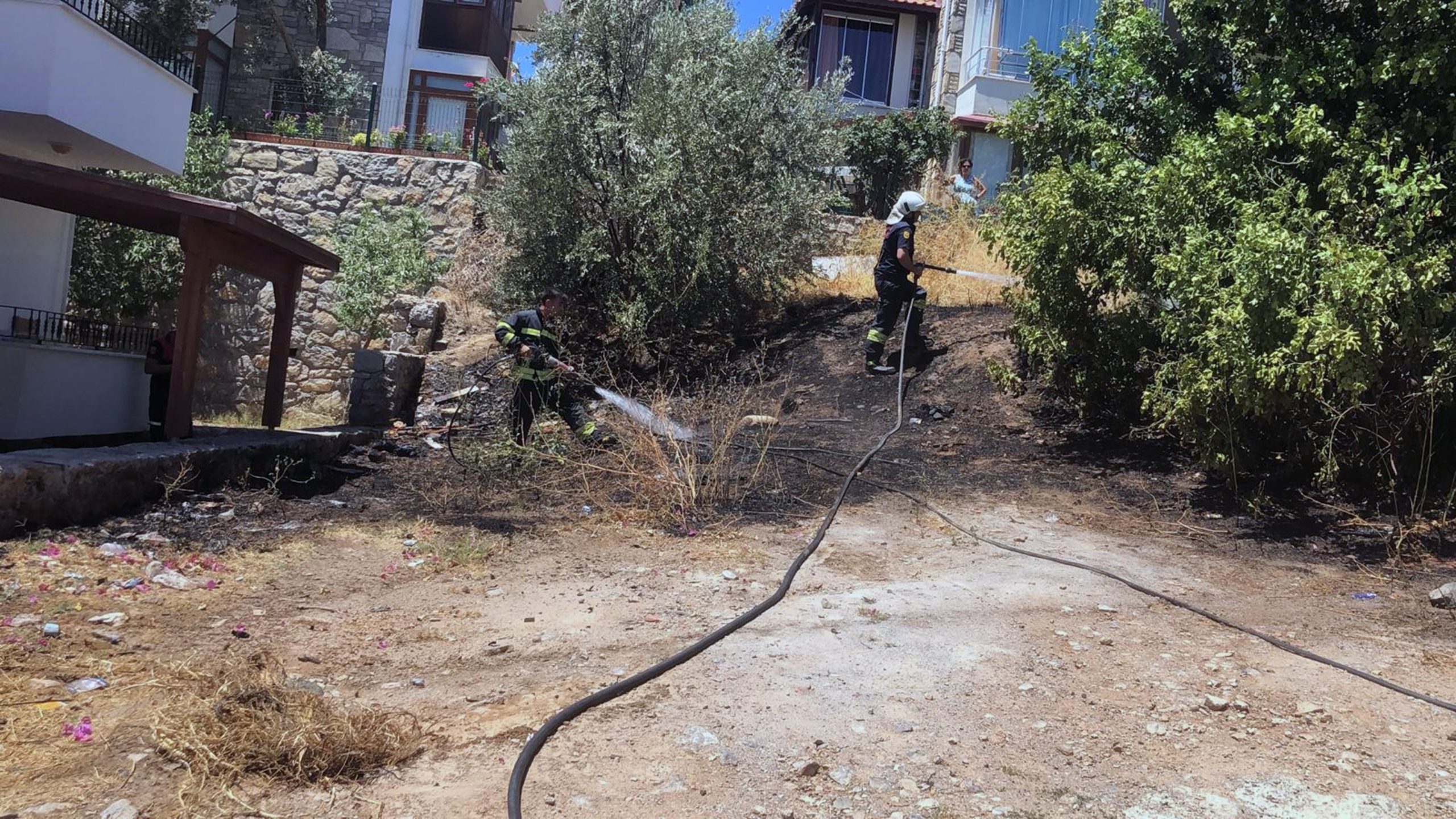 Muğla’nın Datça ilçesi İskele Mahallesinde boş alanda bulunan kuru otların tutuşması ile başlayan yangın evlere sıçramadan itfaiye ekipleri tarafından söndürüldü.
