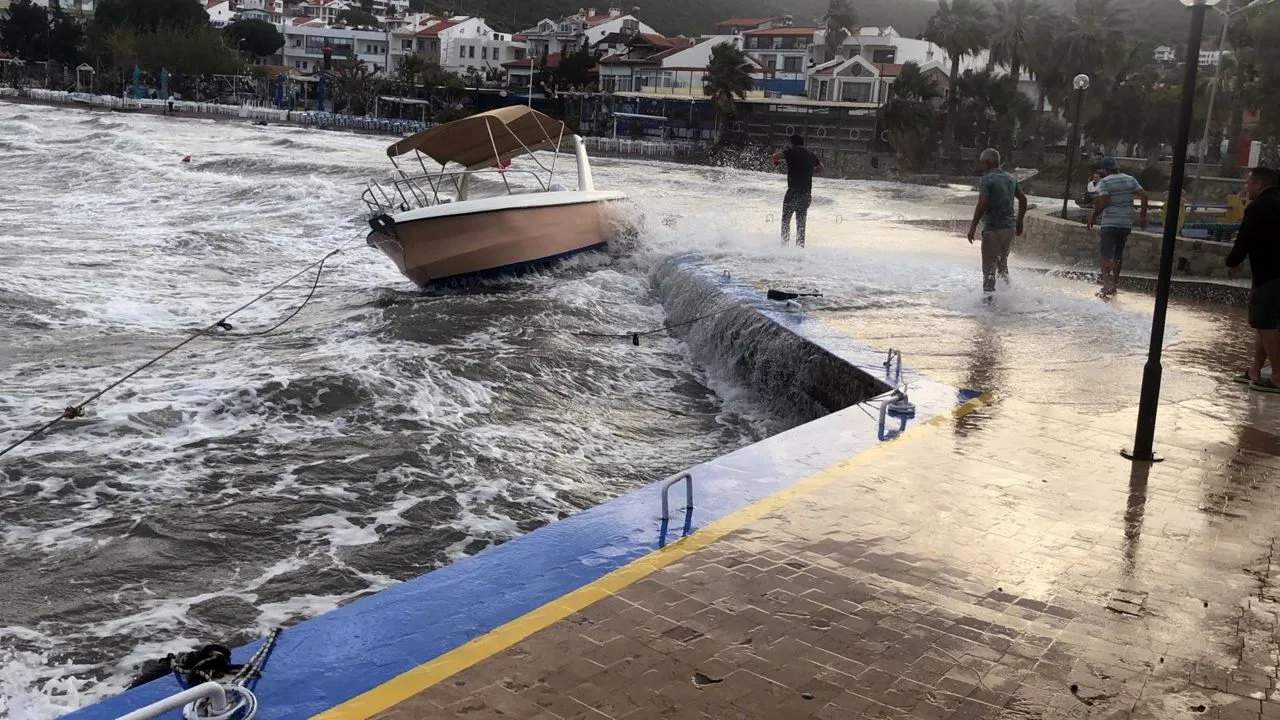 Meteoroloji Genel Müdürlüğü tarafından Bodrum-Kaş arasında denizlerde fırtına uyarısının ardından, Datça ilçesinde öğle saatlerinde başlayan ve kıyıyı döven dalgalar, teknelerde büyük tehlikeye neden oldu.