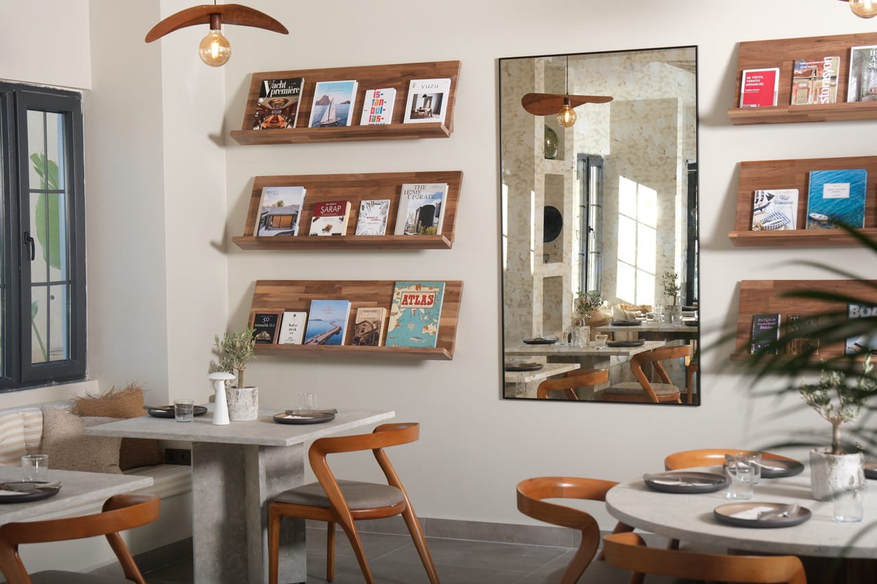 Doğal taşlar, ahşap detaylar ve sürdürülebilir malzemelerle tasarlanan mekânda, gün batımını izleyebileceğiniz denize sıfır bir teras bulunuyor. İç mekânda ise, loş ve sıcak aydınlatmalarla şık ve konforlu bir atmosfer yaratılmış durumda.