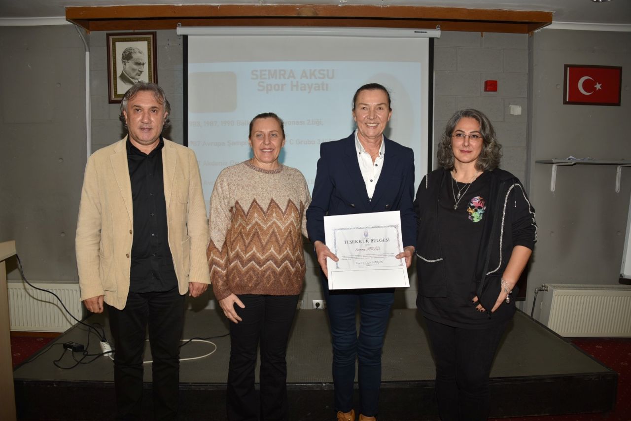 Spor Bilimleri Fakültesi öğrencileri ve öğretim üyeleriyle bir araya gelen Semra Aksu, beden eğitimi öğretmenliği, olimpiyat sporculuğu, spor yöneticiliği ve belediye meclis üyeliğine uzanan kariyer hayatı üzerine söyleşi gerçekleştirdi.