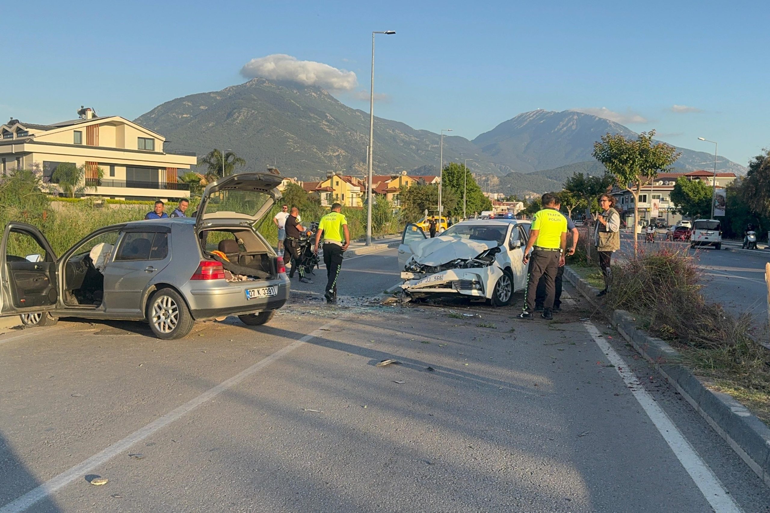 Kaza, Fethiye ilçesi Mustafa Kemal Bulvarı üzerindeki Fethiye Adliye Kavşağı’nda meydana geldi. Edinilen bilgiye göre, Basri K. idaresindeki 07 K 3391 plakalı otomobil, henüz bilinmeyen bir nedenle karşı şeride geçerek Yaşar A. yönetimindeki 35 JJ 566 plakalı otomobille çarpıştı. Kazada sürücüler Yaşar A. ve Basri K. ile birlikte araçlarda yolcu olarak bulunan Gönül A. ve İskender B. yaralandı.