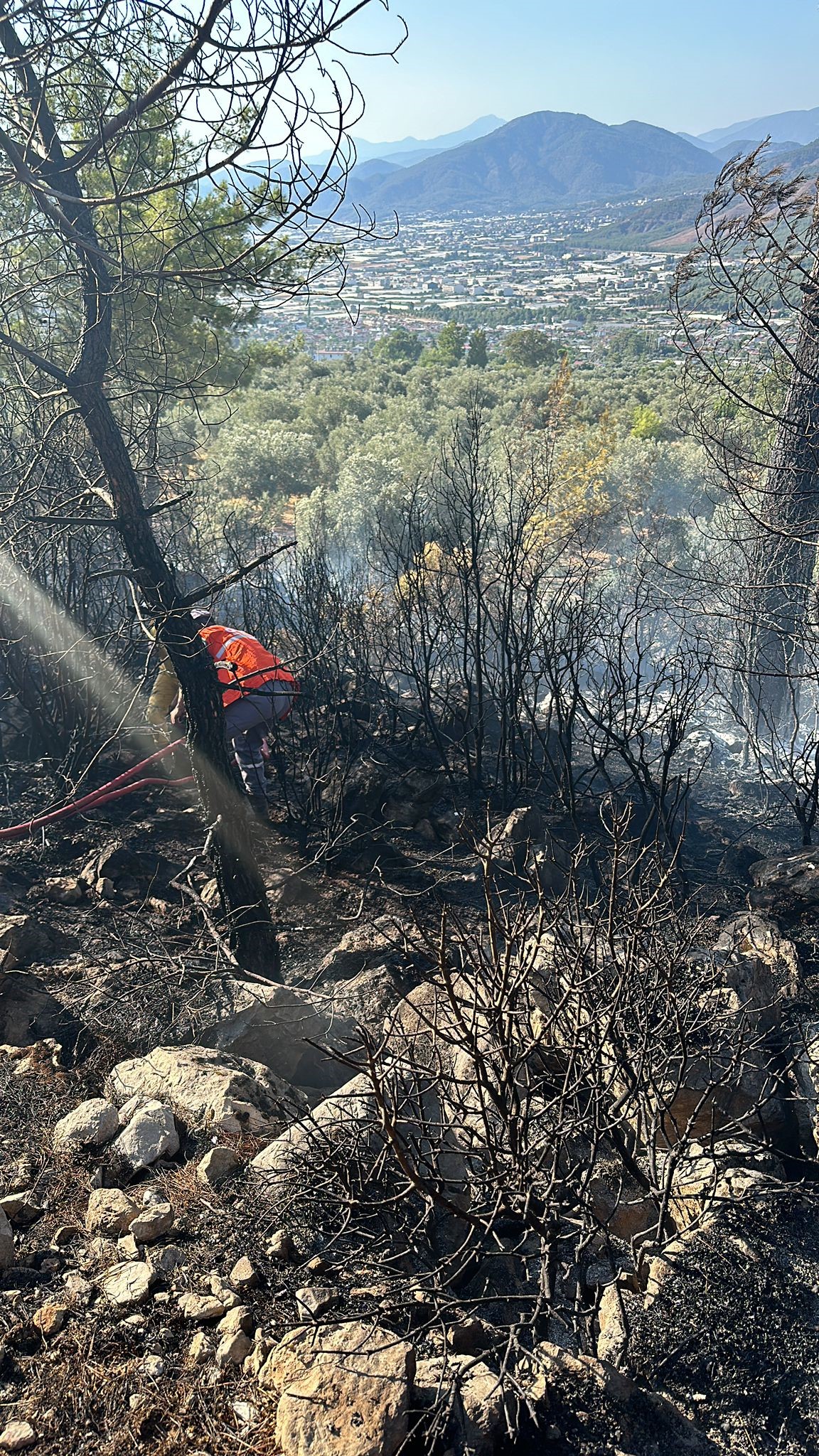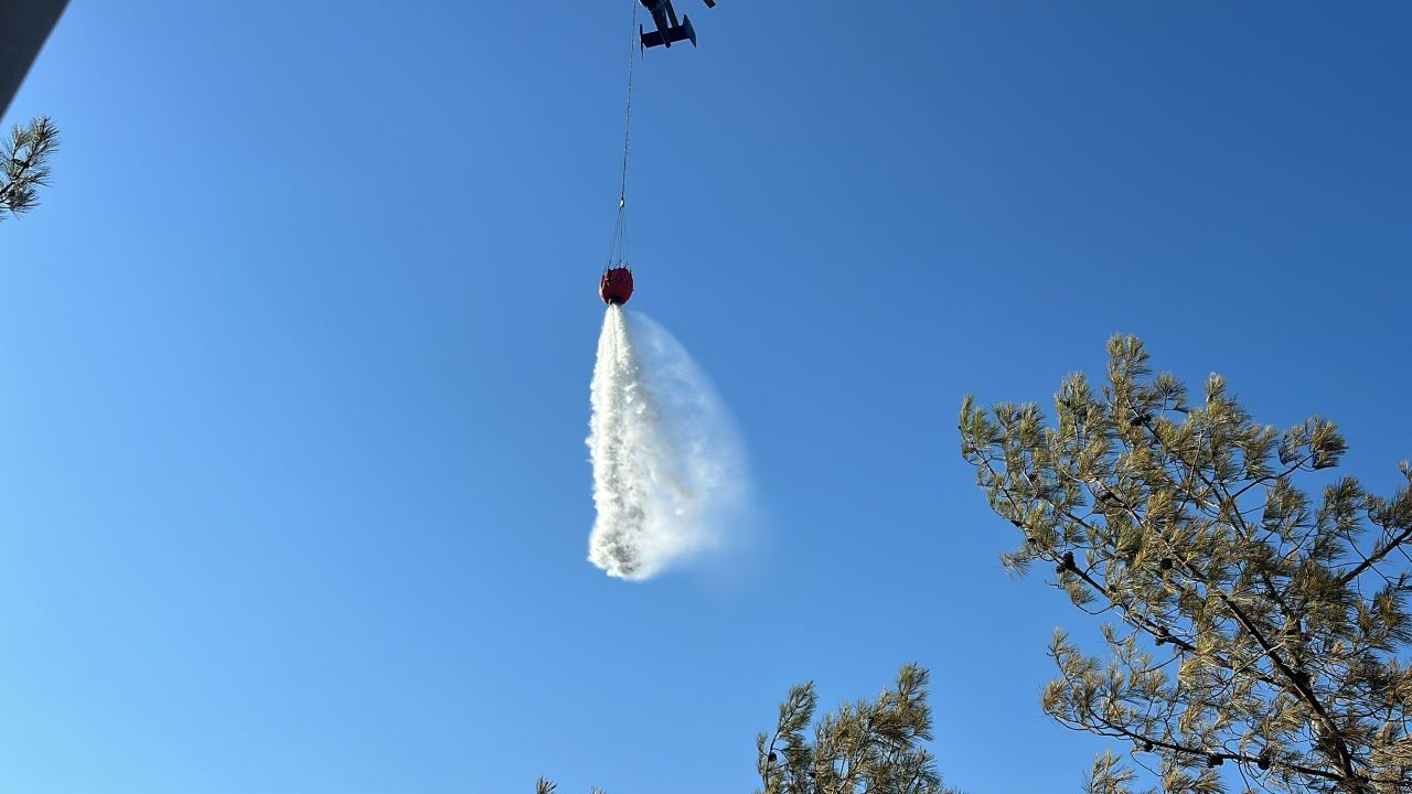 Havadan ve karadan müdahale edilen yangın kısa sürede kontrol altına alındı. Bölgede soğutma çalışmaları sürüyor.