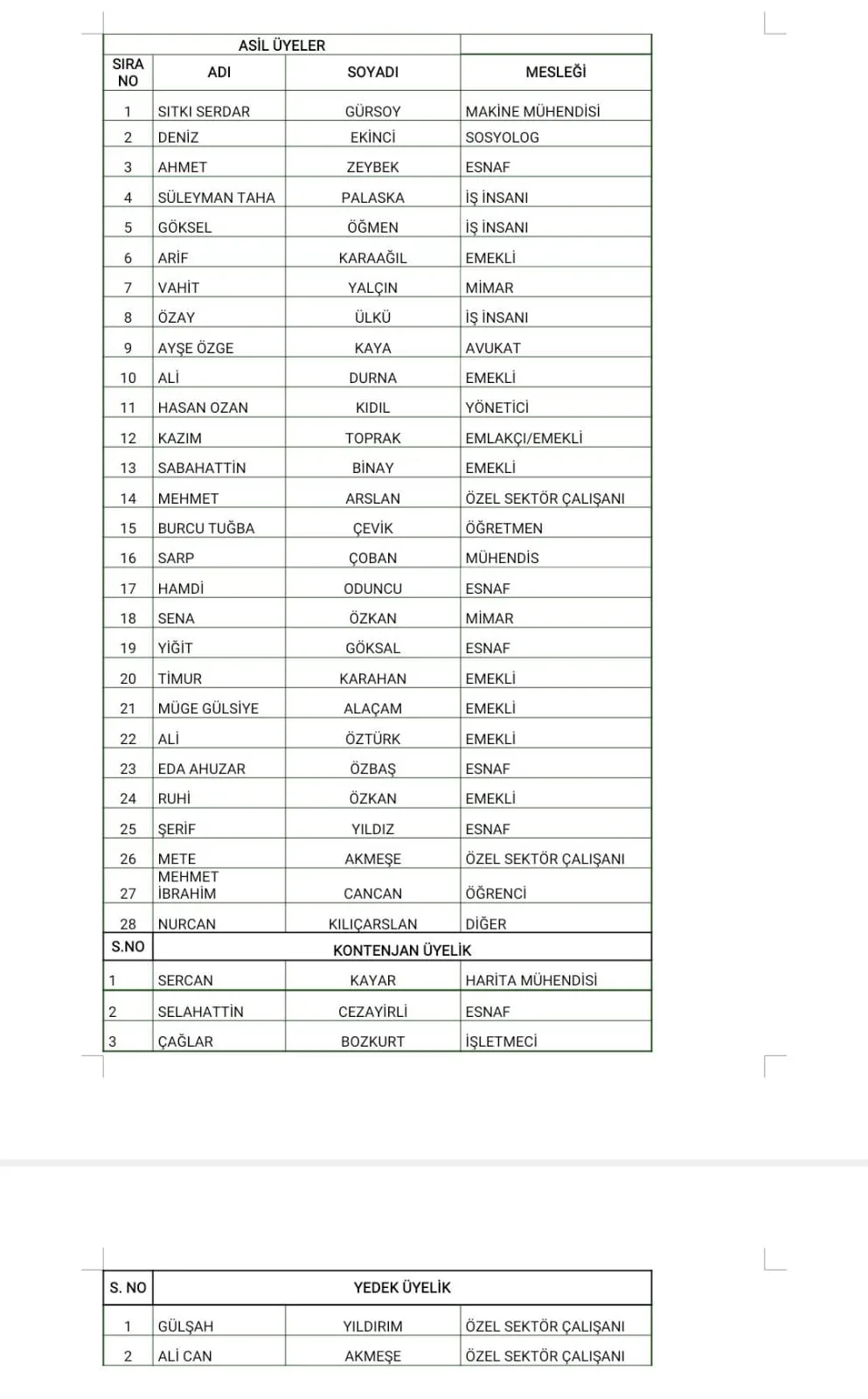 Hüseyin Nizamoğlu adaylığındaki İYİ Parti Menteşe Meclis Üyesi listesi şu isimlerden oluştu;
