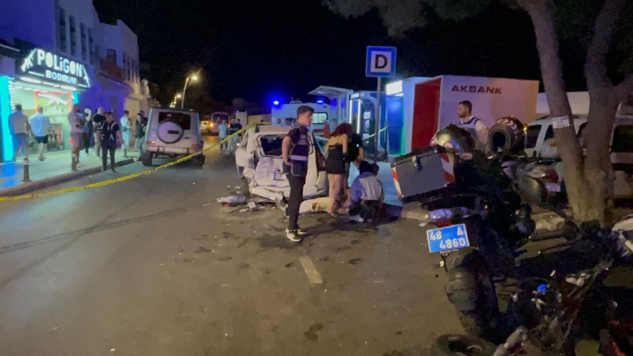 Muğla’nın Bodrum ilçesinde kontrolden çıkan lüks cip, cadde kenarında yürüyen insanların arasına daldı. Yerli ve yabancı turistlerin olduğu 6 kişi kazada yaralanırken, ortalık adeta savaş alanına döndü.