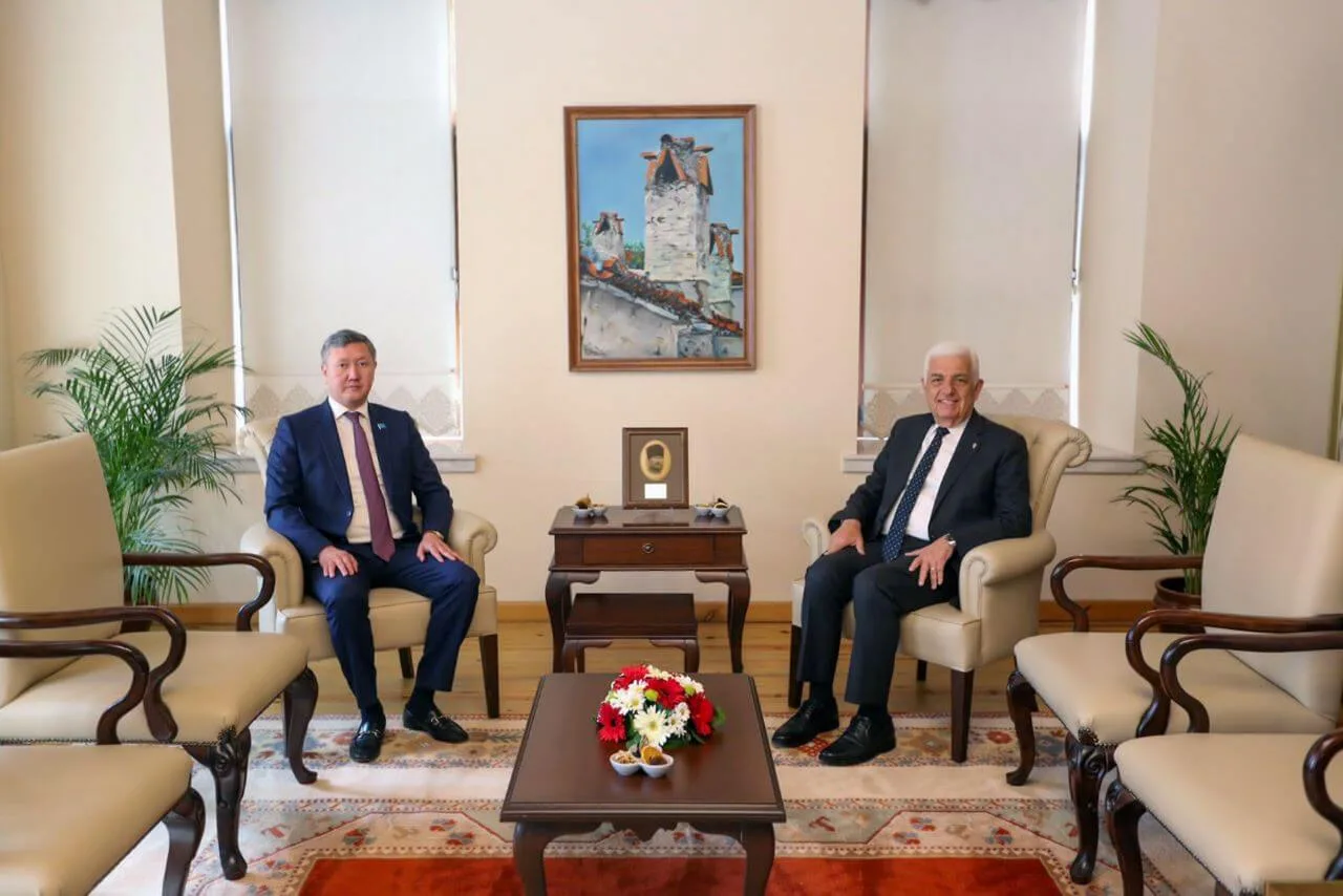 Kazakistan Cumhuriyeti Antalya Başkonsolosu Kuat Kanafeyev Muğla Büyükşehir Belediye Başkanı Dr. Osman Gürün’ü ziyareti sırasında Muğla’da 190 Kazakistan Cumhuriyeti öğrencisinin bulunduğunu belirtti. Kuat Kanafeyev “İki ülke arasında ilişkiler çok büyük öneme sahip ve güçlü bir bağımız var. Sıcak ve yakın ilişkilerimizi daha da geliştirmek ve ilerletmek adına çalışmalar yapıyoruz. Kazak gençlerimiz Türkiye’de okuyor ve birbirlerini yakından tanıma fırsatı buluyorlar. Türkiye geneli 8 bin 820 kazak öğrenci var. Muğla’da 190 öğrencimiz okuyor. Gelecek için bu çok önemli. Gençlerimiz birbirinin kültürünü ve yaşamlarını tanıyorlar. Ayrıca Türkiye Cumhuriyetinin 100. yılını en içten dileklerimle kutluyor, yeni yüzyılda da birlik ve beraberliğimizin artarak devam etmesini diliyorum” dedi.