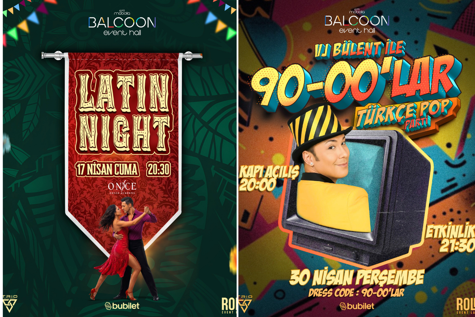 Balcoon Event Hall’un bir diğer etkinliği ise 90’lar ve 2000’ler konseptiyle düzenlenecek gece olacak. “Kasetlerin kalemle sarıldığı günlerden bugüne” sloganıyla duyurulan etkinlikte ekranların unutulmaz yüzü VJ Bülent sahne alacak. 30 Nisan Perşembe günü yapılacak. 90’s & 00’s dress code konseptindeki etkinlikte kapıların 20.00’de açılacağı, programın ise 21.30’da başlayacağı bildirildi.