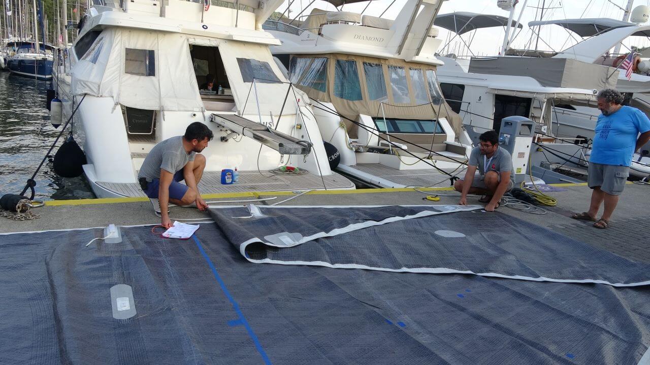 Marmaris Yarış haftasında dereceye giren teknelerde ölçümler yapılıyor