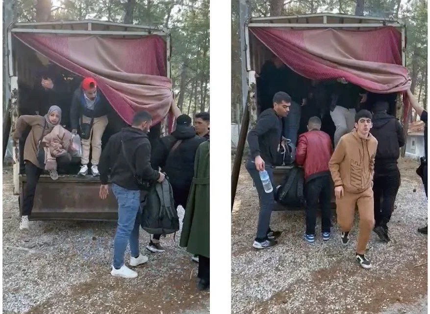 Edinilen bilgiye göre, 34 plakalı bir kamyon tarafından Datça kıyı şeridinden Yunanistan adalarına yasa dışı yollardan geçiş yaptırılmak üzere çok sayıda düzensiz göçmen naklinin yapıldığı bilgisi alındı. Marmaris Cumhuriyet Başsavcılığı koordinesinde Muğla İl Jandarma Komutanlığı, Marmaris İlçe Jandarma Hisarönü Karakol ekipleri tarafından plakası belirlenen kamyon Datça yolu üzerinde durduruldu.