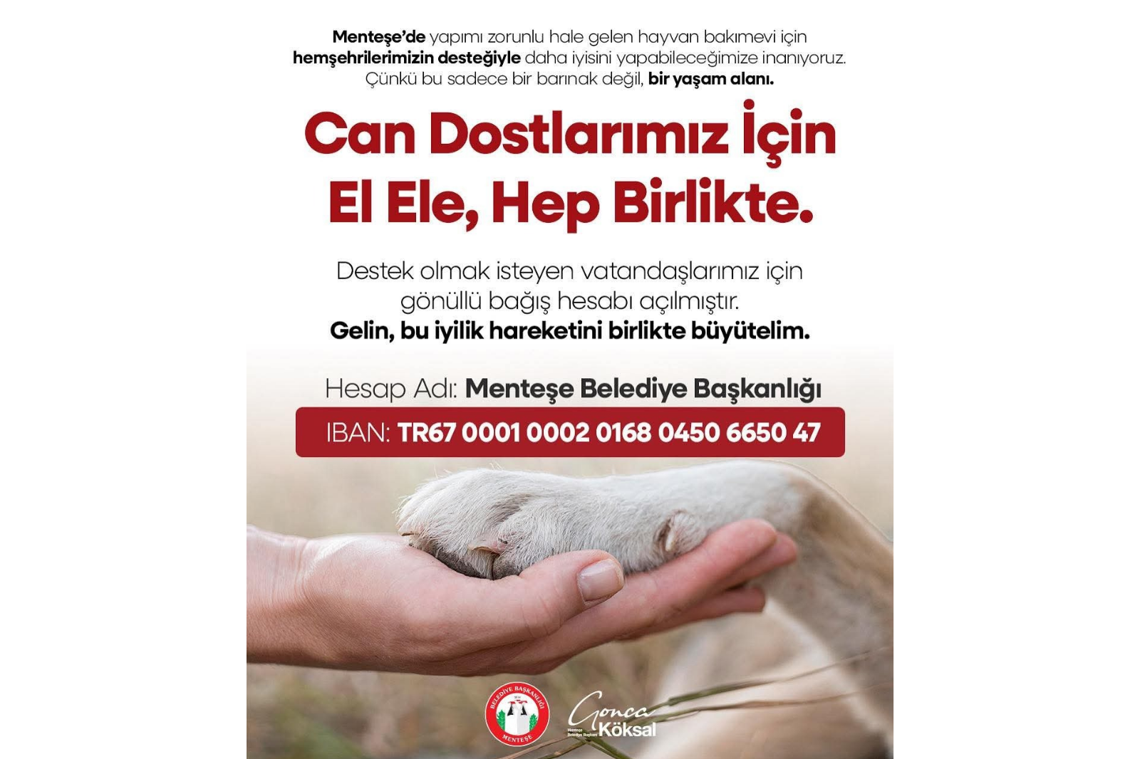 Menteşe Belediyesi’nce yapılan duyuruda, bakımevi yapılmasının zorunlu hale geldiği belirtildi. Duyuruda, “Menteşe’mizde kuracağımız hayvan bakımevimiz için hep birlikte daha iyisini yapabileceğimize inanıyoruz. Çünkü bu sadece bir barınak değil, bir yaşam alanı. El ele, hep birlikte. Gelin bu iyilik hareketini büyütelim” ifadeleri kullanıldı.