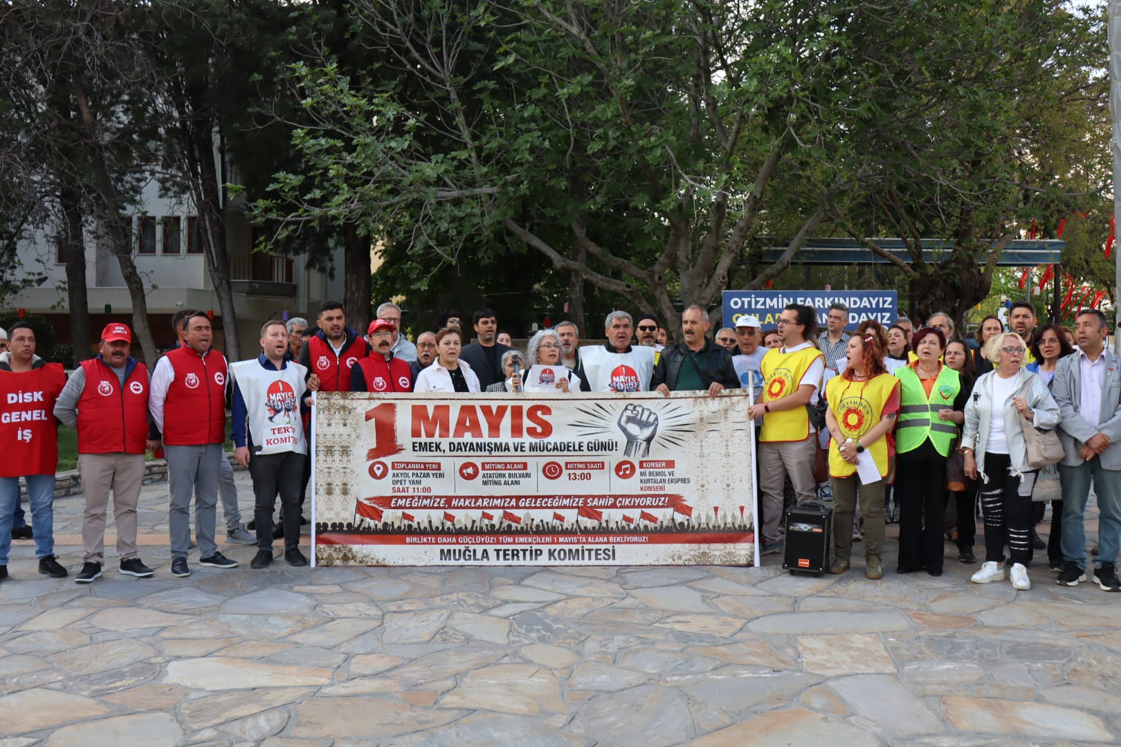 Muğla’nın Menteşe ilçesinde TMMOB Muğla, DİSK, KESK ve Muğla Tabip Odası üyeleri basın açıklaması yaparak 1 Mayıs İşçi Bayramı’na çağrı yaptı. Açıklamada, “Emeğimizin hakkı için; gelirde, vergide, ülkede adalet için; yurtta ve dünyada barış için; gerçek bir demokrasi için 1 Mayıs’ta omuz omuza birleşelim” denildi.