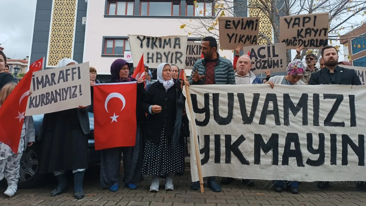 Muğla’da yapı kayıt mağduru köylüler, Çevre, Şehircilik ve İklim Değişikliği Müdürlüğü ile Menteşe Belediyesi önünde basın açıklaması yaparak evlerinin yıkılmasını protesto etti.