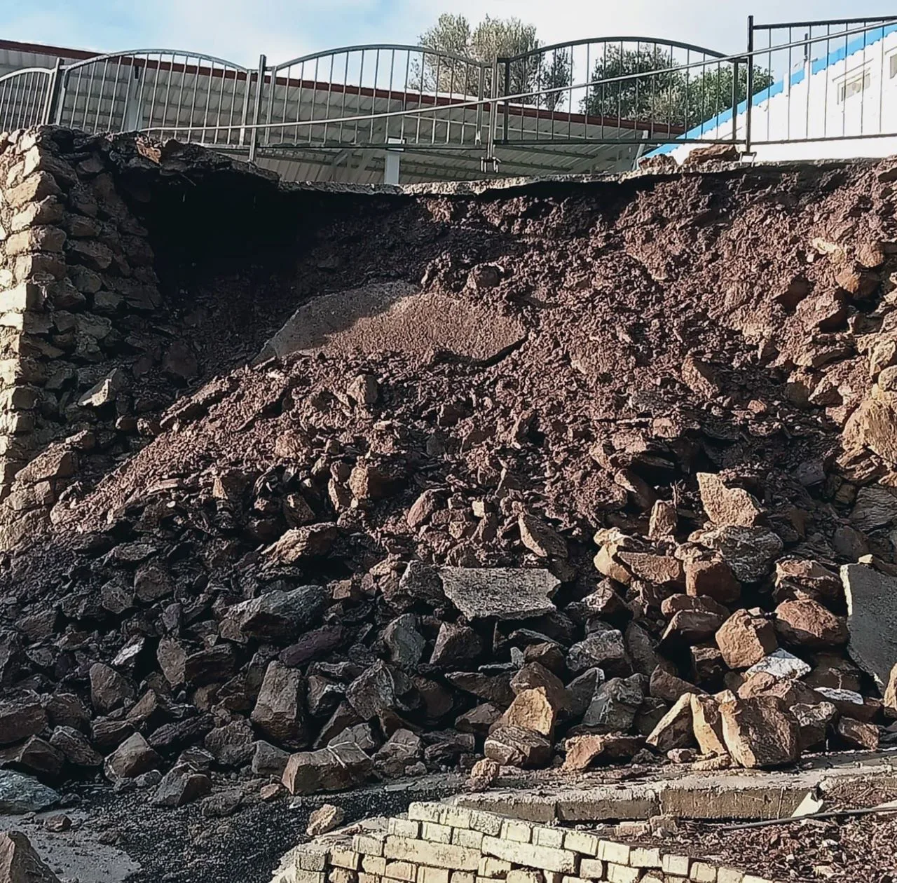 Öte yandan dolu yağışı ve fırtına dolayısıyla Gürceğiz Mahallesi’ndeki okulun istinat duvarı çöktü.