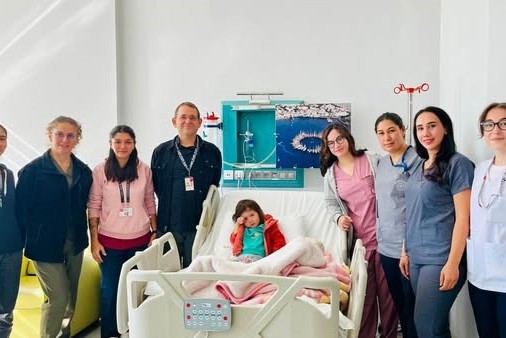Hastanenin Kalp Damar Cerrahisi Klinik Şefi Prof. Dr. Buğra Harmandar ve ekibi tarafından yapılan ameliyatla, Beren’e tek ventrikül kalp hastalığı tedavisinin son aşaması olan Extrakardiyak Fontan ameliyatı başarıyla uygulandı.