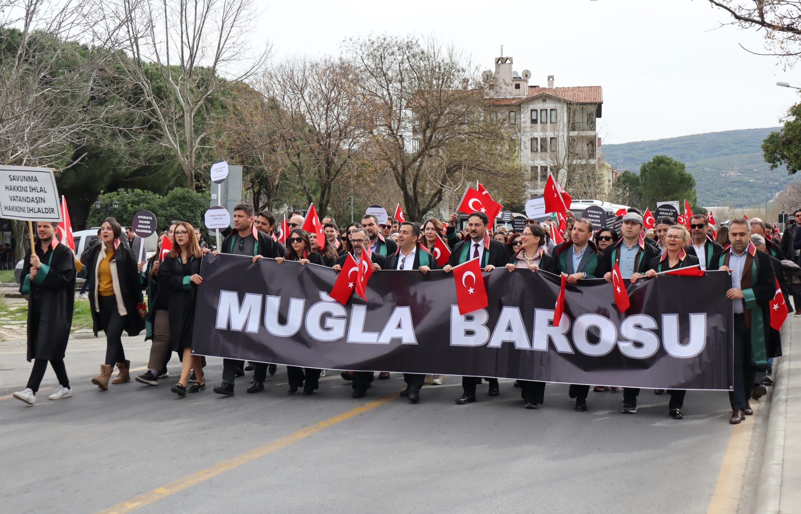 İstanbul Cumhuriyet Başsavcılığı’nın, İstanbul Barosu yöneticilerine açtığı davada Baro Başkanı İbrahim Özden Kaboğlu ve yönetim kurulunun görevlerine son verilmesine tepki gösteren Muğla Barosu protesto yürüyüşü gerçekleştirdi.
