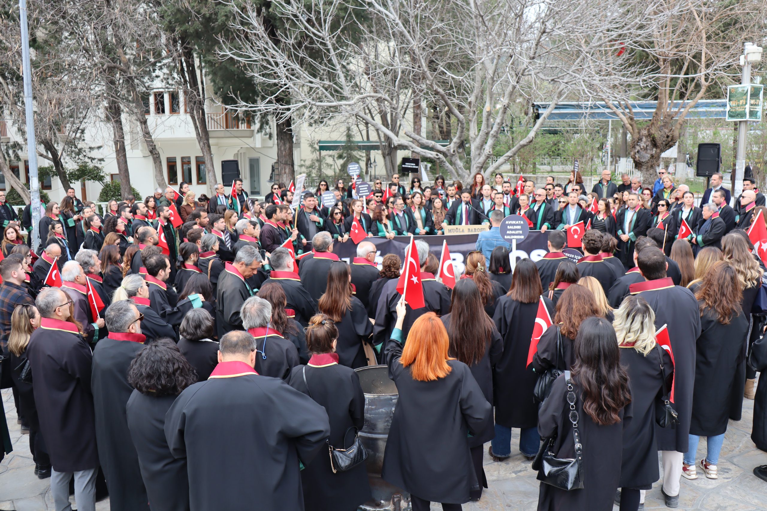 Muğla Barosu avukatları, İstanbul Barosu yönetiminin görevden alınması kararına tepki göstererek yürüyüş gerçekleştirdi. Baro Başkanı Levent Akgün, “Seçme ve seçilme hakkına müdahale asla kabul edilemez. Seçimle gelen seçimle gider” dedi.