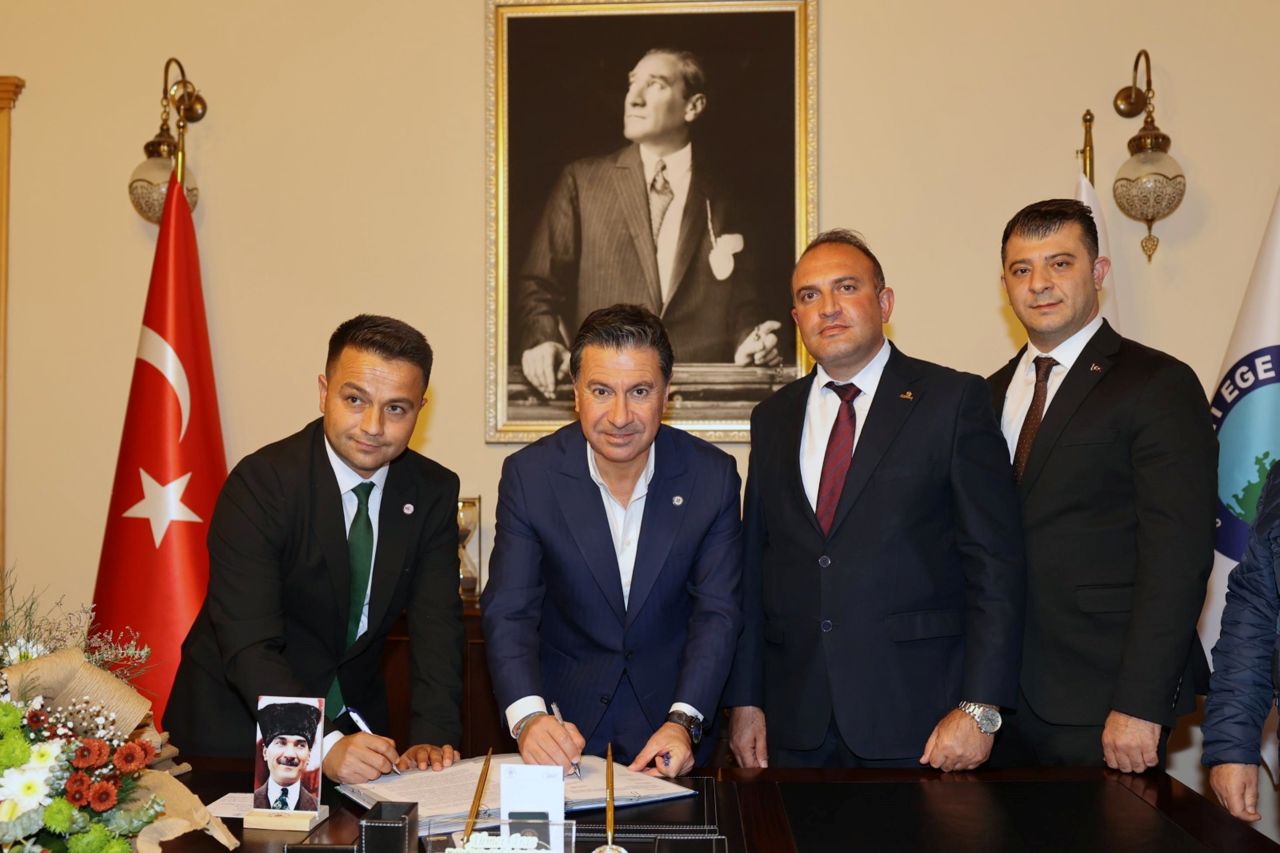 Sözleşme törenine Kıyı Ege Belediyeler Birliği ve Muğla Büyükşehir Belediye Başkanı Ahmet Aras, Sendika Genel Sekreteri Savaş Çerkez, Genel Örgütlenme Sekreteri Devrim Onur Erdağ, Denetleme Kurulu Başkanı Salih Yıldız, Disiplin Kurulu Üyesi Deniz Atabey, Muğla Şube Başkanı Yücel Kılınç ve şube yönetim kurulu üyeleri katıldı.