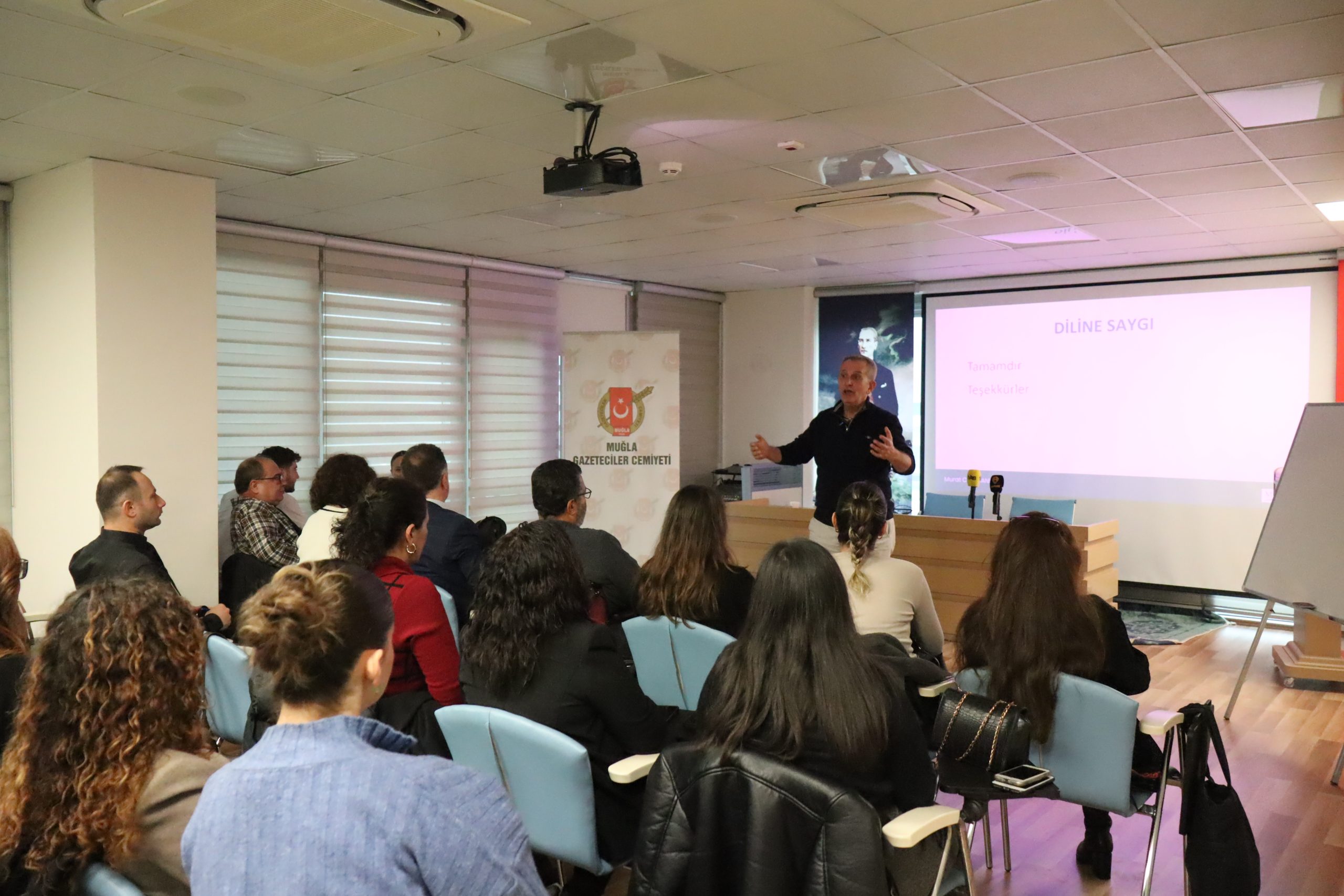 Muğla Gazeteciler Cemiyeti (MGC) tarafından basın mensuplarının haber dili ve doğru Türkçe kullanımına yönelik farkındalığını artırmak amacıyla “Türkçe’nin Gücüyle Haberini Yükselt” başlıklı mesleki eğitim çalışması düzenlendi.
