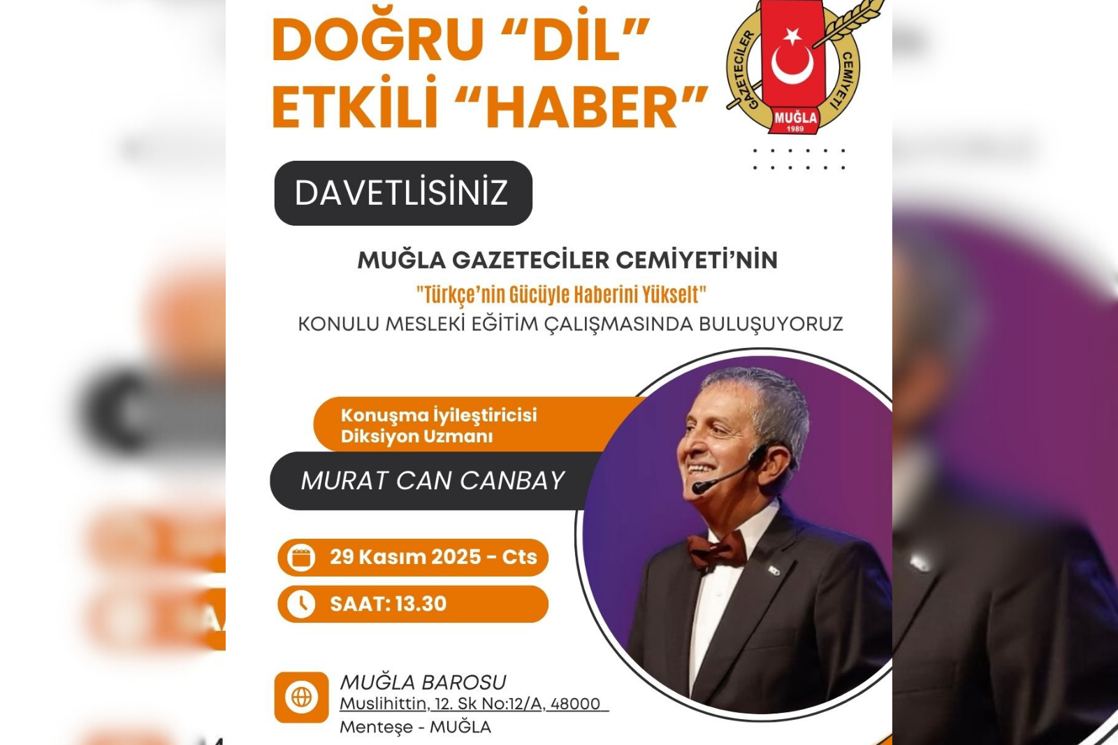 Eğitim çalışması, 29 Kasım 2025 Cumartesi günü saat 13.30’da Muğla Barosu toplantı salonunda gerçekleştirilecek. Programda doğru telaffuz, akıcı konuşma, haber metinlerinde dil işçiliği ve etkili iletişim teknikleri ele alınacak.