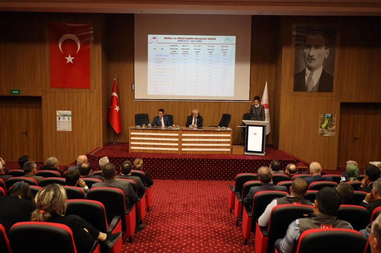 Muğla Vali Yardımcısı İsmail Soykan yönetimindeki 45 kişilik İl Kriz Komisyonu’nun da katılımıyla gerçekleştirilen toplantıda konuşan İl Tarım ve Orman Müdürü Barış Saylak, Muğla’nın en önemli turizm markası olan kentlerinin bugün susuzluk sorunu ile gündeme geldiğini hatırlatarak “El ele kol kola vererek bu sorunu çözmek zorundayız. Hep birlikte bir çıkış yolu bulmak zorundayız. Kuraklık kapıya geldi dayandı. Yarın karşılaşacağımız tüm zorluklardan hepimiz sorumluyuz. Herkes bir şeyler yapmaya çalışıyor. Ama biz önce içme suyu şebekemizdeki kaçak kayıp oranını düşürmek zorundayız. Tarımsal sulamada vahşi sulamaya bir son vermek zorundayız. Açık alanlarda sağa sola akan bir litre suyu bile tutmak zorundayız. Bu sorun Muğla’mızın. Bu sorun hepimizin” diye konuştu.
