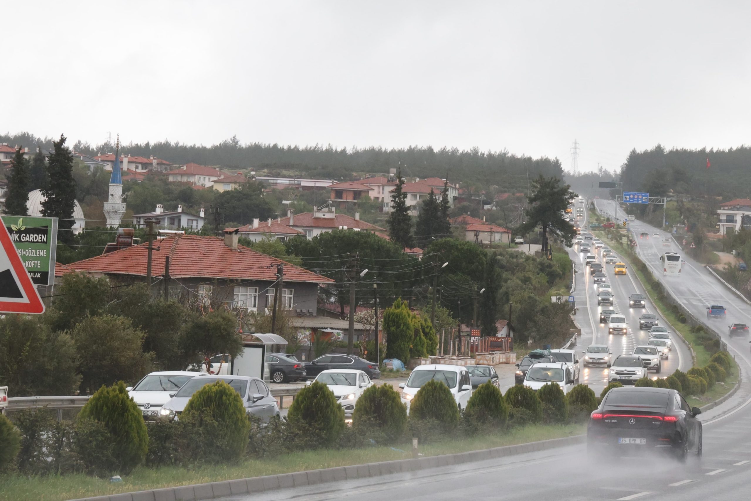 Marmaris, Datça, Fethiye, Ortaca, Dalaman ve Köyceğiz ilçelerinden ayrılan tatilciler, Ula ve Menteşe ilçeleri arasında trafik akışında aksamalara neden oldu. Yağışlı havaya rağmen yola çıkan sürücüler, Muğla-Menteşe güzergahında uzun araç kuyrukları oluştururken, trafik zaman zaman durma noktasına geldi.