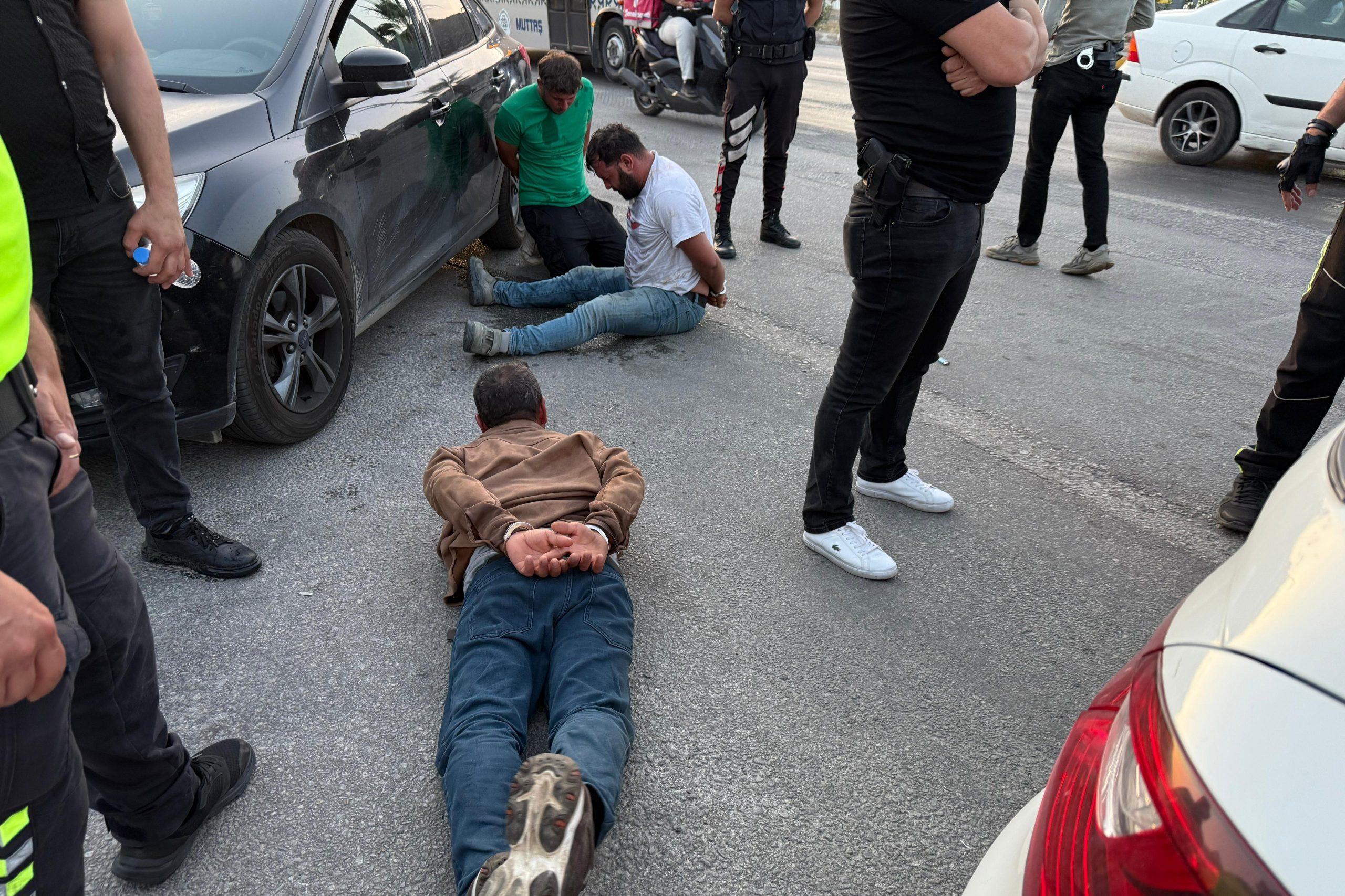 Takviye ekiplerin hızla olay yerine ulaşmasıyla 3 saldırgan gözaltına alındı. Kısa süreli arbedede 2 polis memuru hafif yaralanırken, araçtaki diğer kişilerin de alkollü olduğu tespit edildi.