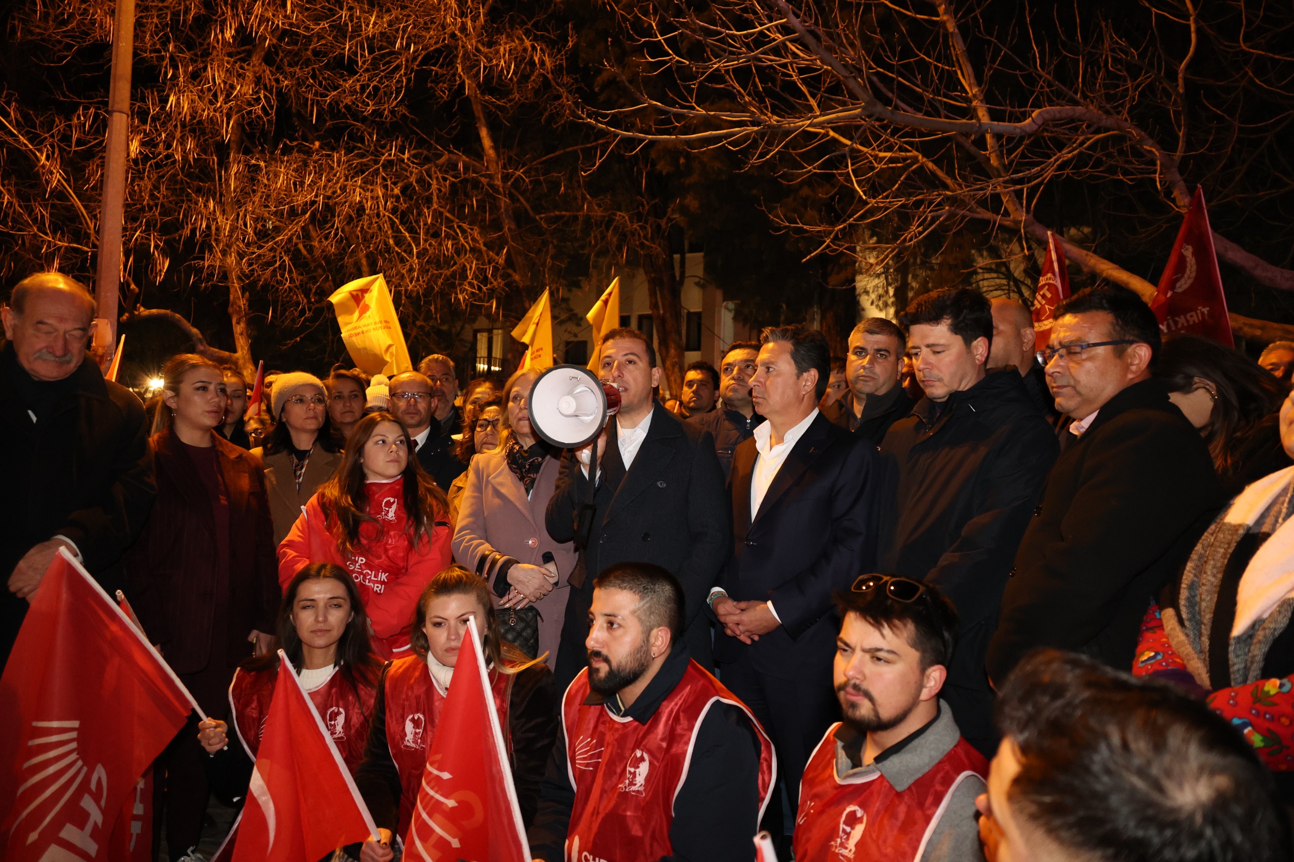 “Sayın Cumhurbaşkanı rakip olarak gördüğü Sayın Ekrem İmamoğlu’ndan korktuğu için, sırf karşısında rakip olmasın diye dün haksız, hukuksuz ve usulsüz olarak üniversite diploması İstanbul Üniversitesi Yönetim Kurulu tarafından iptal edildi. Yalnızca bir talimatla iptal edildi. Buradan tüm Muğlalılara, tüm Menteşelilere ve tüm Türkiye’ye sesleniyorum; dün itibariyle hiçbir Türk vatandaşının bu topraklarda kan ve mal güvenliği kalmamıştır. Yargıyı bir silah olarak kullanan siyasi iktidar artık ülkemizde savaşı, mücadeleyi bir tık ileriye taşımıştır. Bundan sonra bizler de bugüne kadar yapmış olduğumuz siyasi faaliyetleri bir tık ileriye taşıyoruz. Bundan sonra Sayın Ekrem İmamoğlu ve 105 arkadaşı daha önce İstanbul’da operasyonla, hukuksuz operasyonlarla alınan belediye başkanlarımız, meclis üyelerimiz, gazeteciler, fikir insanları dışarı çıkıncaya kadar her akşam Muğla’nın meydanlarında, sokaklarında olmaya devam edeceğiz.”