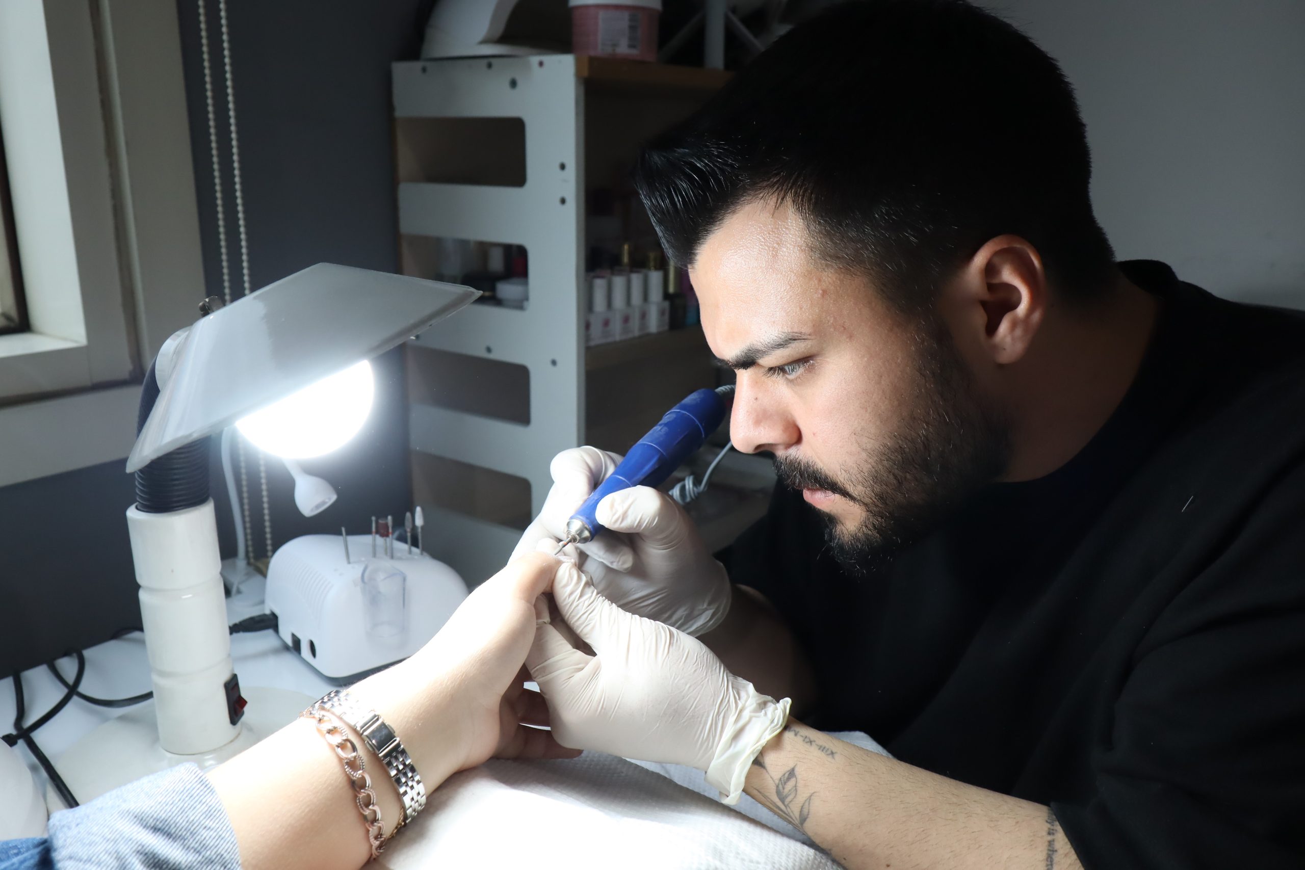 ÖZEL HABER / Muğla’nın Menteşe ilçesinde yaşayan 30 yaşındaki Cumhur Çakır, kadınların yoğunlukta olduğu tırnak bakımı ve protez tırnak (nail art) sektöründe adeta önyargıları yıkarak yoluna devam ediyor. Çakır’ın mesleğe başlama nedeni ise bir aşk hikâyesine dayanıyor.