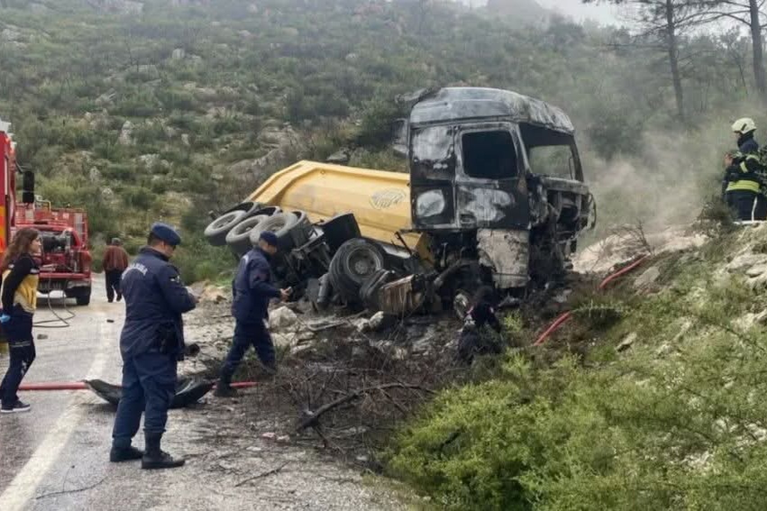 Muğla’da feci kazada tır şoförü yanarak can verdi
