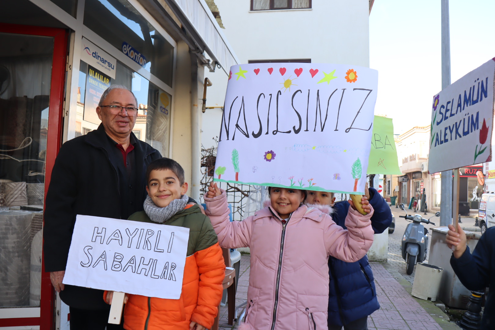 Kocamustafendi İlkokulu öğrencileri, ellerinde “Napıp durun”, “Hayırlı işler”, “Kolay gelsin”, “Nasılsınız”, “Hayırlı sabahlar” yazılı dövizlerle esnafla selamlaştı. Öğrencilerin bu davranışı, esnaf ve vatandaşlar tarafından ilgiyle karşılandı. Öğrenciler de esnafla sohbet ederek güne pozitif bir başlangıç yaptı.