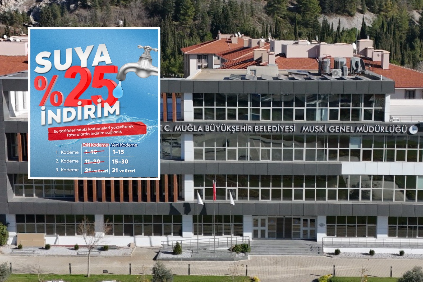 Muğla Büyükşehir Belediyesi tarafından su faturalarında su faturalarında indirime gidildi. En düşük fiyatlı tarife kademesi 10 tondan 15 tona çıkarılarak ortalama yüzde 25 oranında indirim sağlandı. Uygulama, Ocak ayı itibariyle hayata geçti.