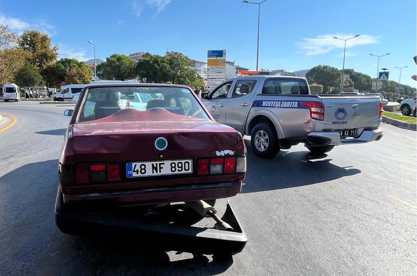 Kaza, Adliye Kavşağı’nda meydana geldi. Edinilen bilgiye göre, 48 NF 890 plakalı otomobil, 48 ANE 695 plakalı şehir içi otobüsü ve Bodrum istikametine seyreden 48 HO 9050 plakalı yolcu otobüsü çarpıştı.