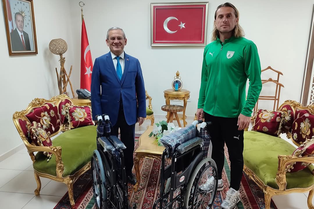 Kaymakam Eriş, futbolcuların duyarlı davranışından dolayı teşekkür ederek, bağışlanan tekerlekli sandalyelerin en kısa sürede ihtiyaç sahiplerine ulaştırılacağını söyledi.