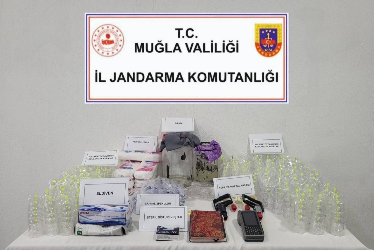 Muğla İl Jandarma Komutanlığı ekipleri, Güzelyurt Mahallesi’nde, T.Ö.Y. isimli şahsın ikametinin alt katında geleneksel ve tamamlayıcı tıp uygulamaları kapsamında hacamat ve sülük tedavisi yaptığı bilgisi alınması üzerine şahsın evine operasyon düzenledi.