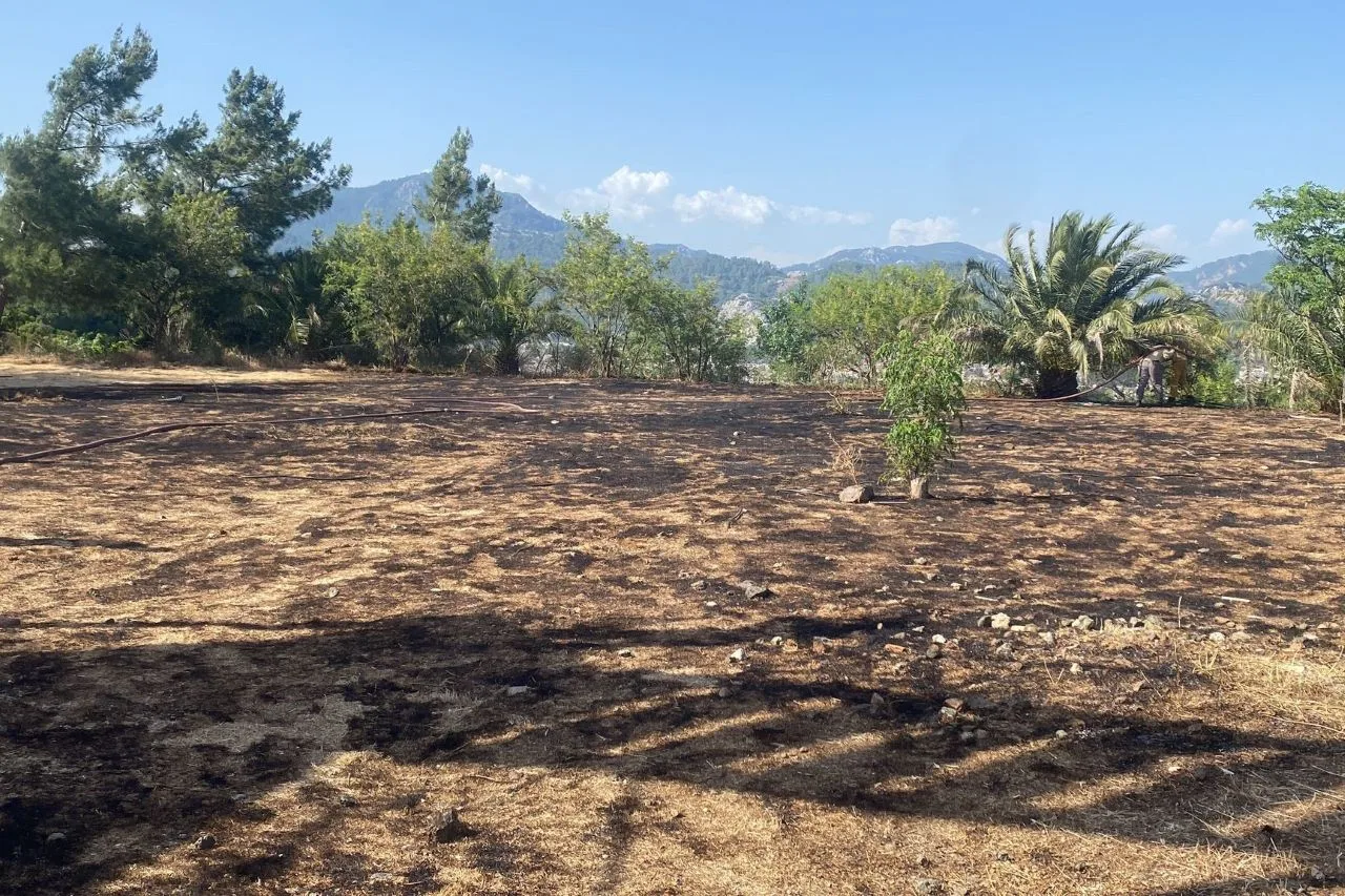 Muğla’nın Marmaris ilçesinde bir işletmenin arazisi içindeki otluk alanda çıkan yangın ormanlık alana sıçramadan söndürüldü.