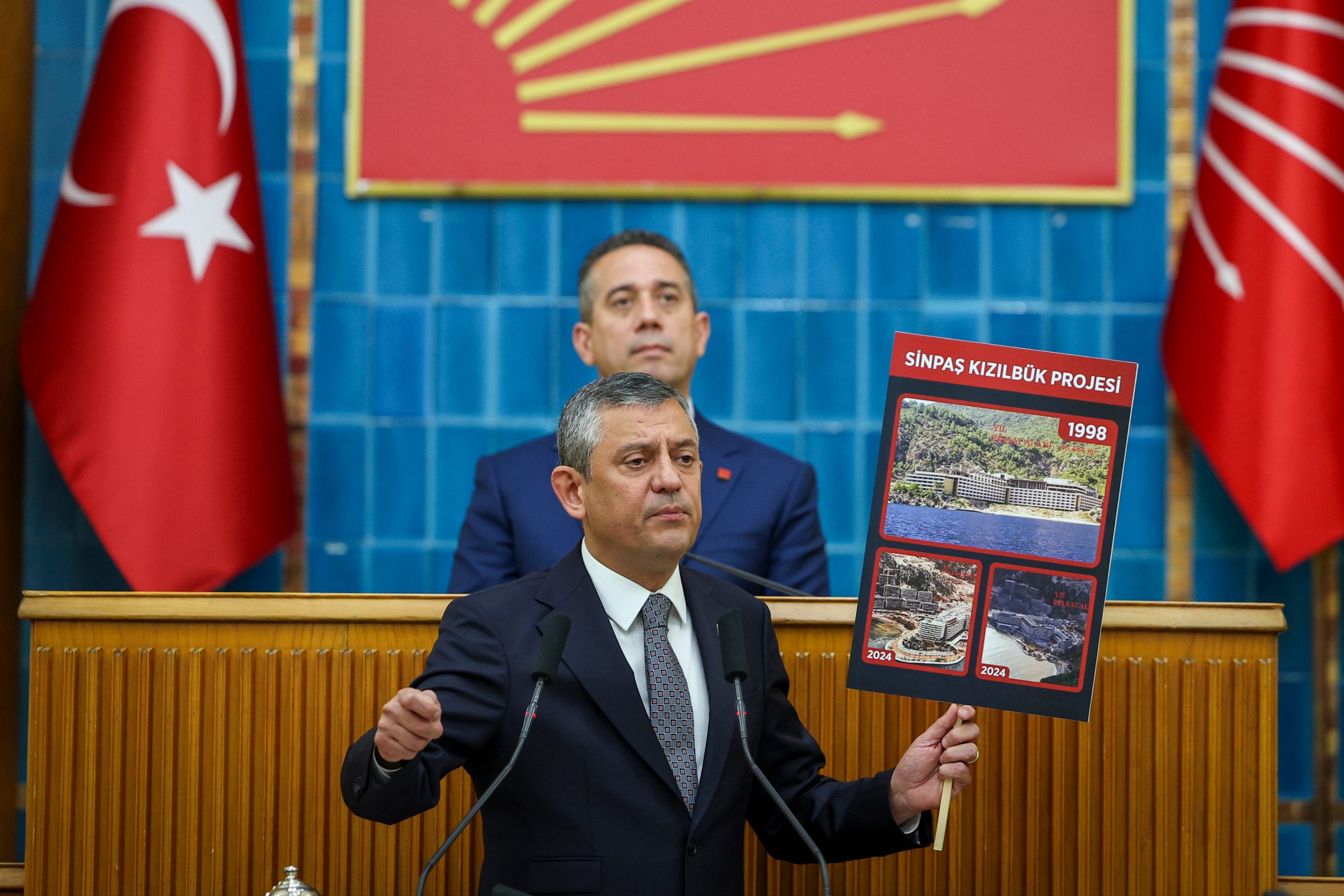CHP Genel Başkanı Özgür Özel partisinin TBMM’deki haftalık grup toplantısında gündeme ilişkin açıklamalarda bulunurken, Muğla’nın Marmaris ilçesinde bulunan Sinpaş/Kızılbük projesine tepki gösterdi.