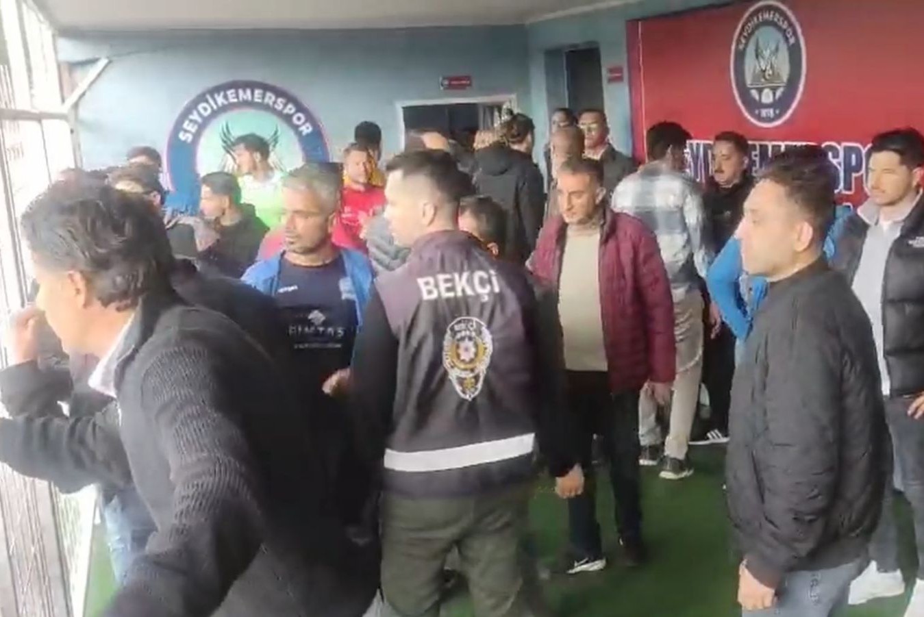 Muğla’da Seydikemer Spor’un Milas Belediyesi Milas Spor’a mağlup olmasının ardından sahada gerginlik yaşandı. Ev sahibi takımın yöneticileri ve taraftarları, hakemlere sözlü ve fiziksel saldırıda bulundu. Olayı görüntülemek isteyen gazeteci Zekeriya Şahin ise Seydikemer Belediye Başkanı Önder Akdenizli tarafından darp edildiğini öne sürdü.