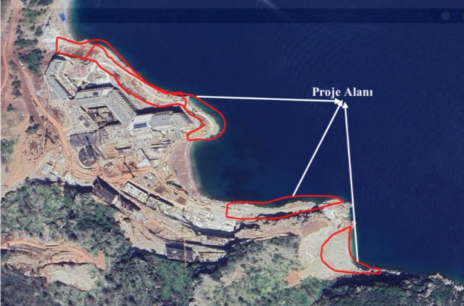 ÇED dosyasında yer alan bilgilere göre proje kapsamında toplam 21 bin 833 metrekarelik deniz alanında uygulama yapılması planlanıyor. Bunun 20 bin 390 metrekaresi deniz dolgusu, 1.443 metrekaresi ise yat bağlama alanı olarak ayrıldı. Dolgu işlemleri için toplamda 32 bin 766 metreküp malzeme kullanılacağı belirtildi; bu miktarın 10 bin 237 metreküpü su altına beton dökümü, 22 bin 529 metreküpü ise taş dolgu şeklinde gerçekleştirilecek.