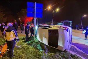 Marmaris’te refüje düşen arabanın içinden burnu bile kanamadan çıktı