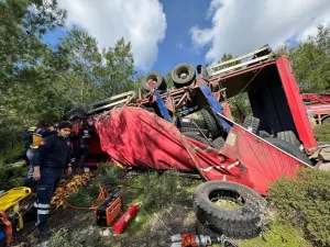 Seydikemer’de kamyonda sıkışan sürücüyü itfaiye kurtardı