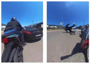 Motosiklet sürücüsünün metrelerce sürüklendiği kaza aksiyon kamerasına yansıdı